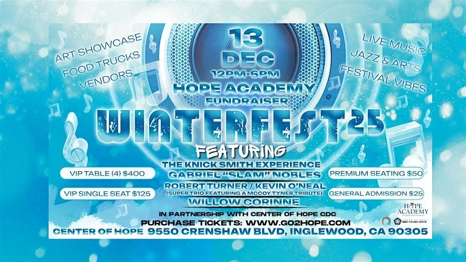 “Swingin,’ Singin,’ and Givin’: WinterFest ’25” was a holiday fundraiser for Hope Academy in partnership with Center of Hope, 9550 Crenshaw Blvd. Inglewood, CA. 90305.